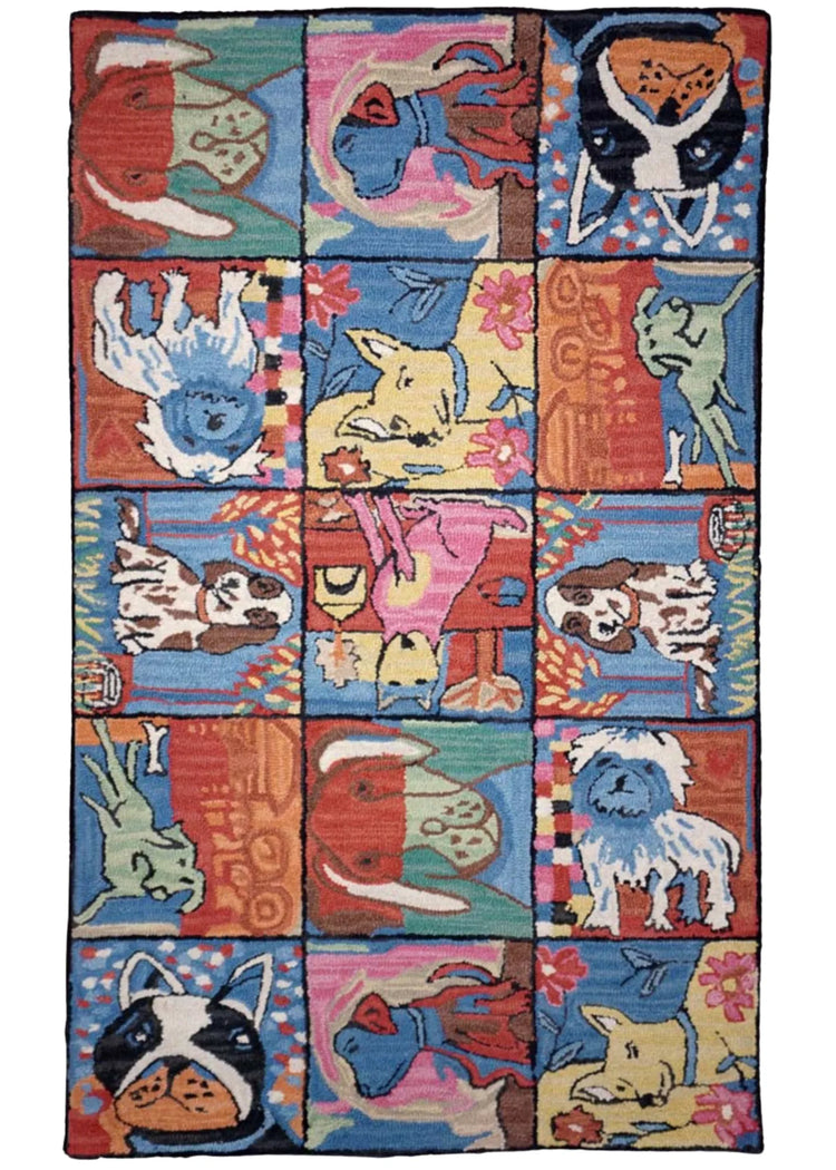 Hand hooked from 100% wool with a cotton cloth back.