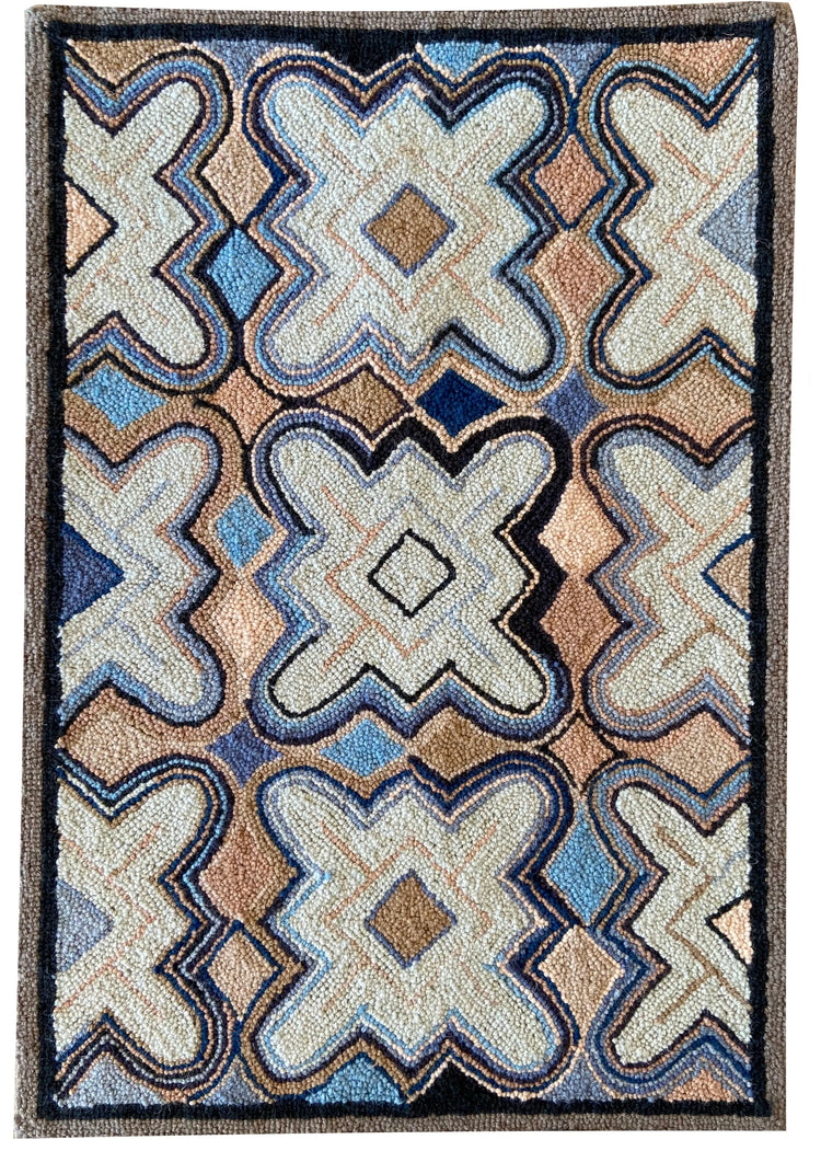 Hand hooked made from 100% wool with a cotton cloth backing.