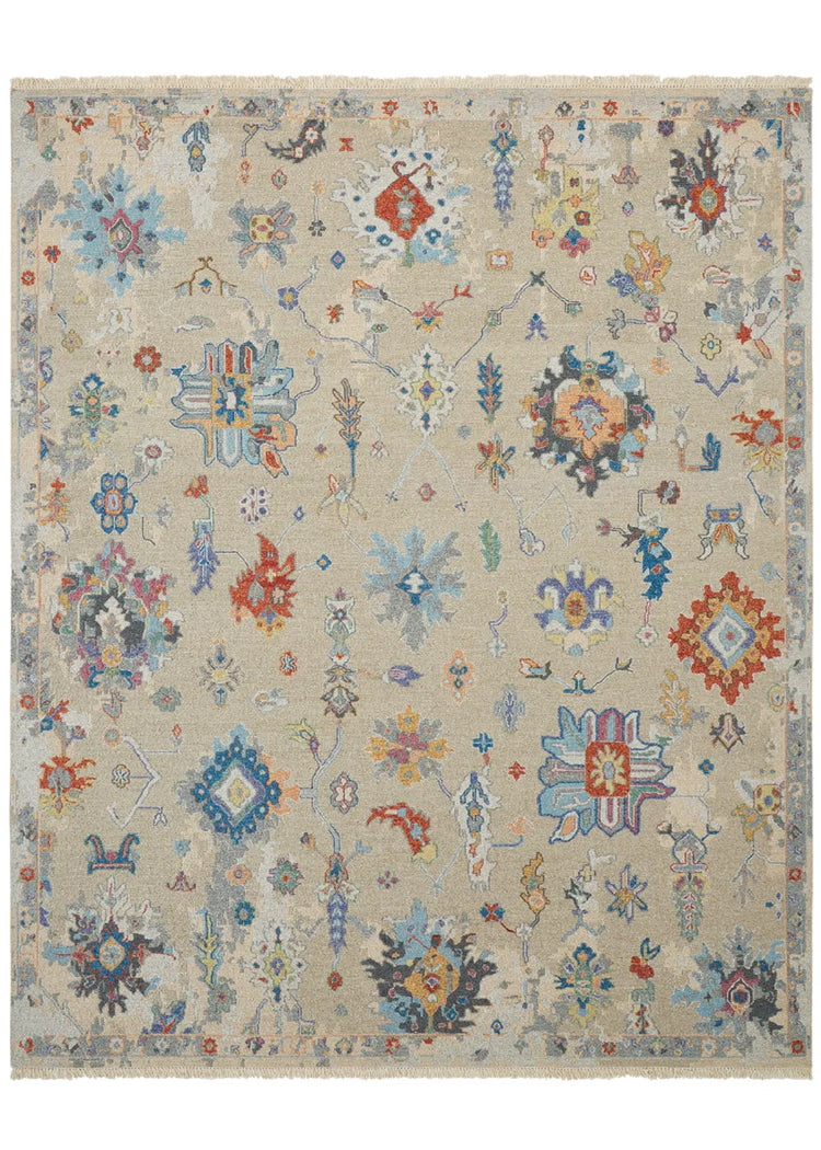 Charming Oushak-inspired designs designs rendered in fresh upbeat colorways. Hand woven using 100% premium wool yarns on a cotton foundation featuring a unique herringbone texture which is a unique characteristic of the classic Soumak weave.