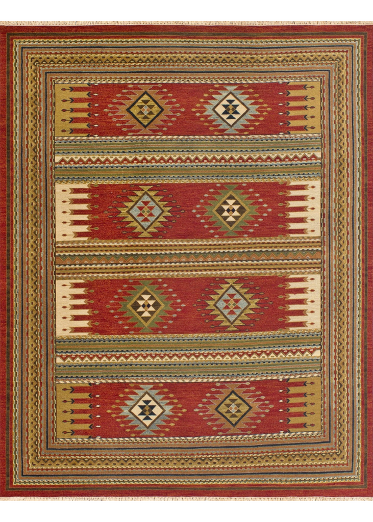 Created for durability, functionality, and beauty, artisans who create these works of art carefully coordinate each woven line of New Zealand wool to create the Herringbone effect native to the Soumak rug.