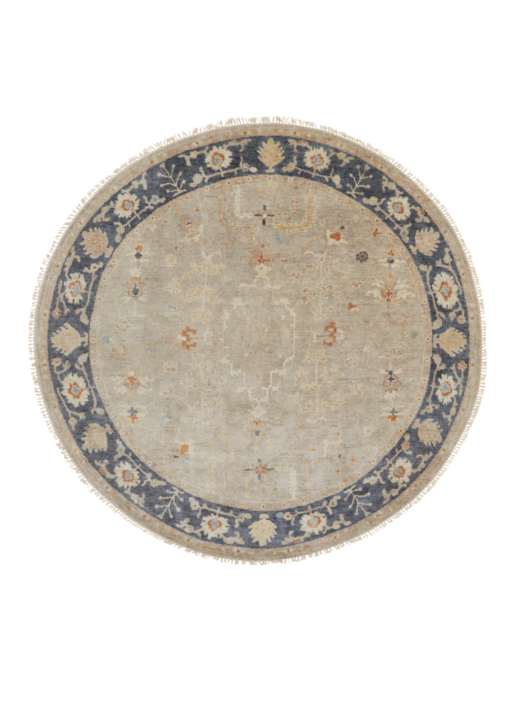 Reminiscent of antique Oushaks, hand knotted in a Turkish style weave.