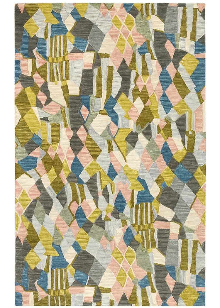 The Deer Leap Hand-Hooked Wool Rug grounds your space with a soft but dramatic mosaic glass pattern. A blend of wool and performance fibers ensures durability.