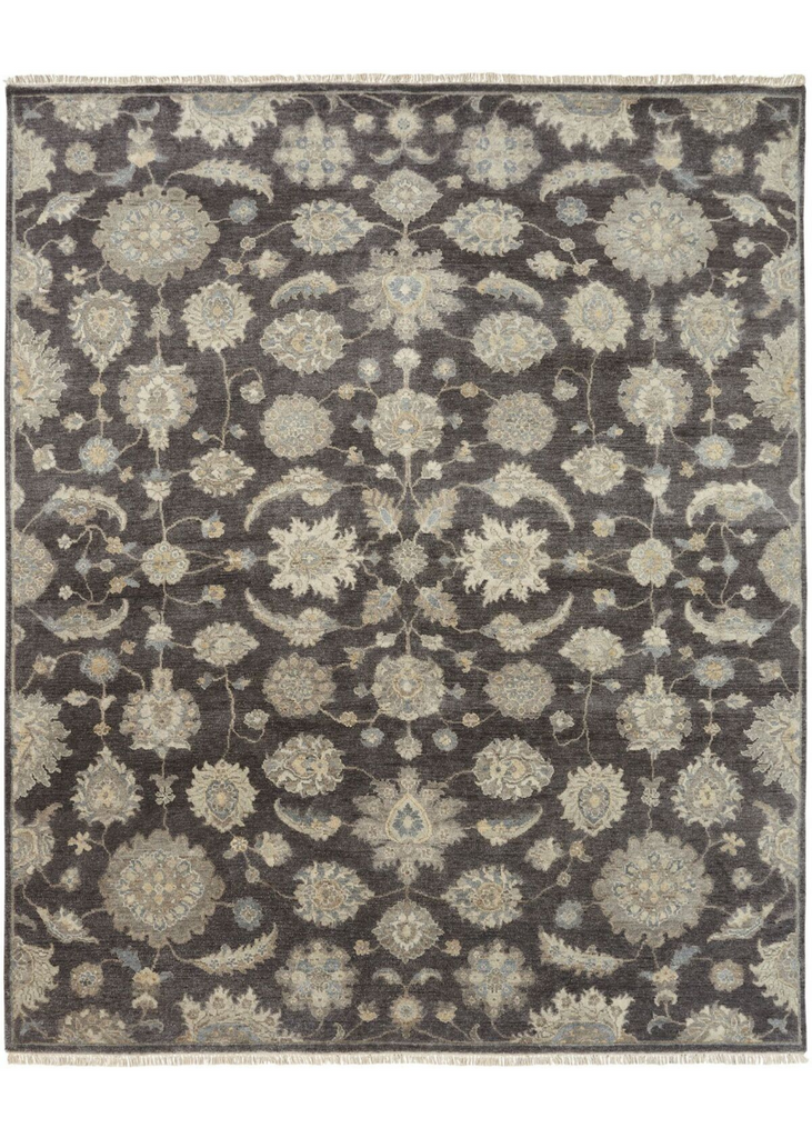 Reminiscent of antique Oushaks, hand knotted in a Turkish style weave.