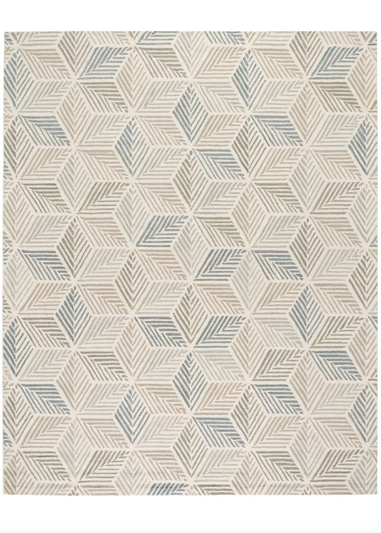 This art worthy floor covering explores all the shades of grey. With a radiant design of intersecting chevrons that, like fire-gazing, evokes a myriad of images from snowflakes to stars, conifers to diamonds.