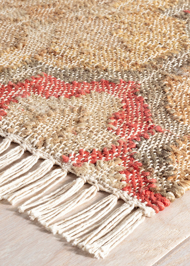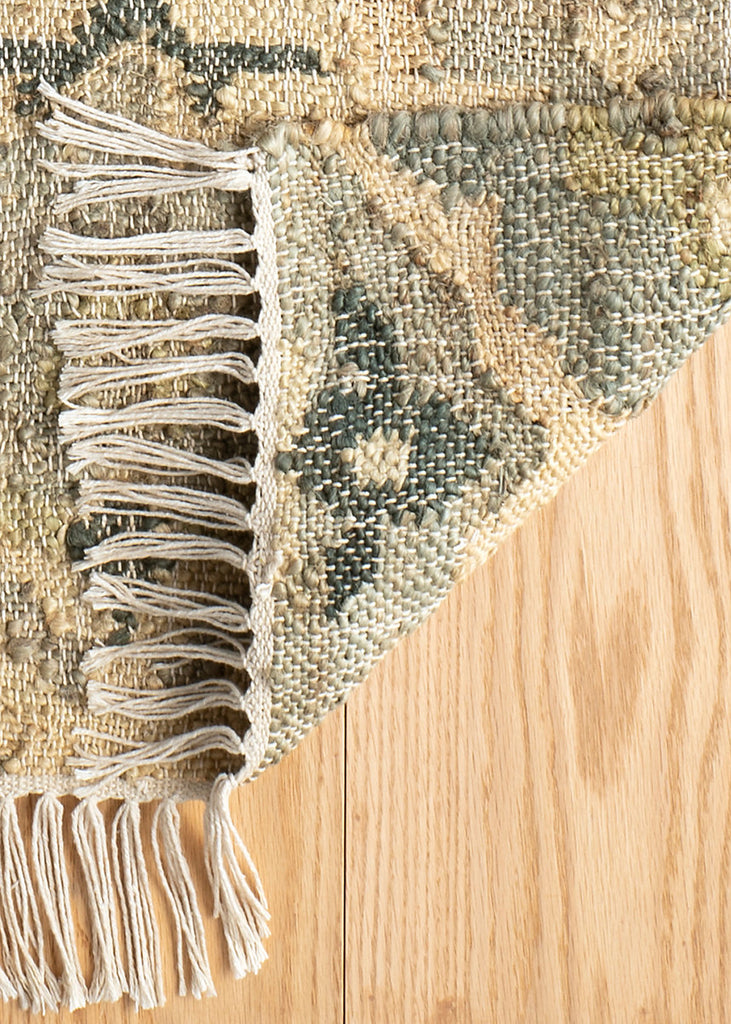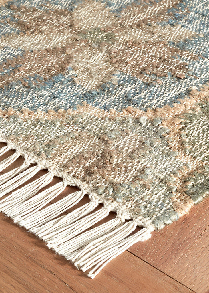 Timeless quatrefoil medallions in shades of sky, denim, natural, and ivory, dhurrie woven from hardworking jute, with a touch of cotton for softness. Sustainable, biodegradable and renewable, jute adds organic character and rustic chic to any room.
