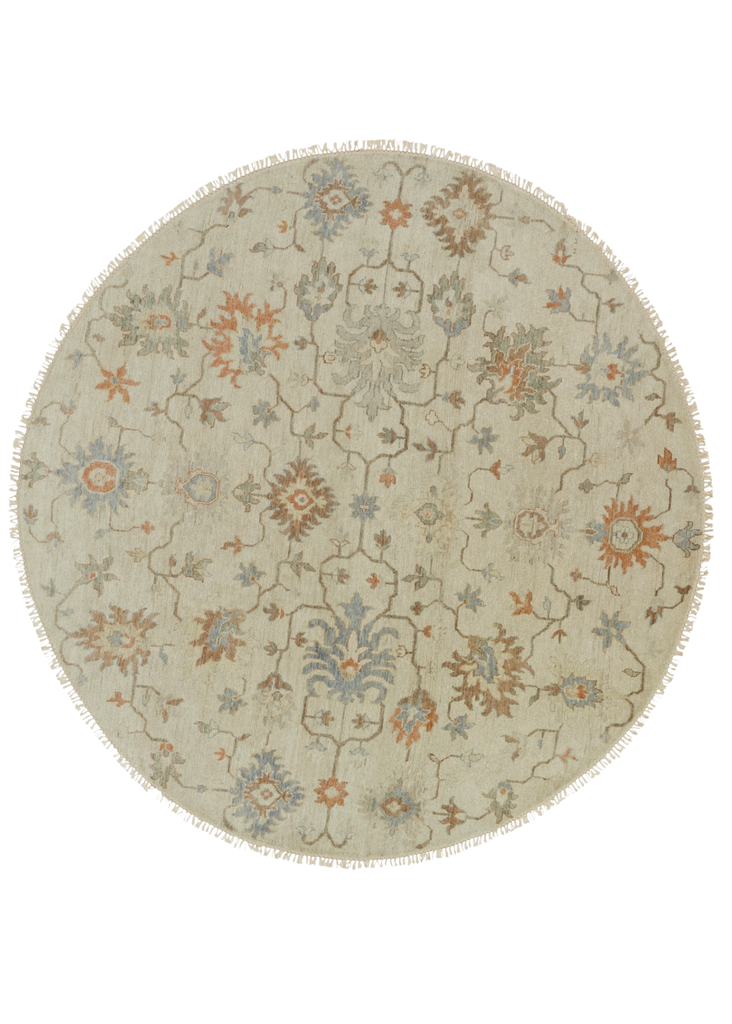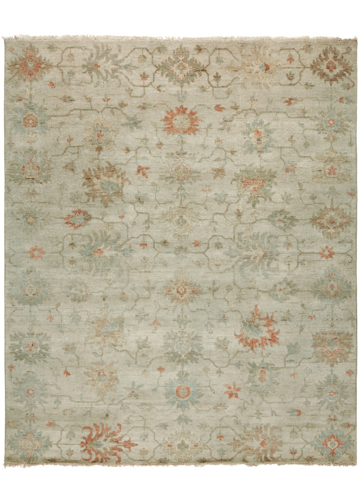Reminiscent of antique Oushaks, hand knotted in a Turkish style weave.